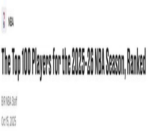 在季前赛火热进行,NBA新赛季即将到来之际,美媒《bleacherreport》公布百大球星名单,其中勇士队库里第5,41岁詹姆斯仍高居第8,火箭队新核心杜兰特第11名。