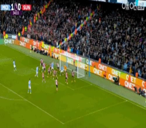 第31分钟,鲁本-迪亚斯轰出一记世界波,曼城1-0领先桑德兰!
