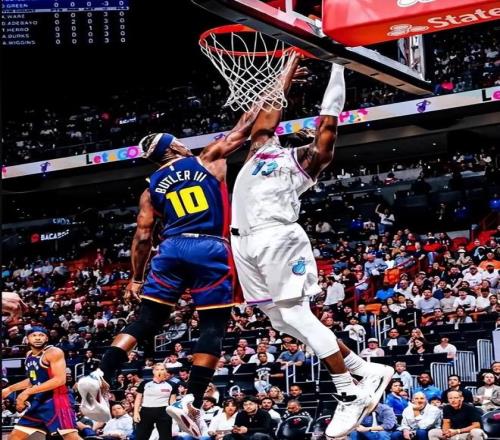 跳球前勇士致敬维金斯,嘴哥开心的笑了!勇士获得开场第一攻没有打成,波斯特还赔上篮板球犯规,双方连续三分打铁维金斯内线补篮得到开场第一分,穆迪反击被帽,拉松内线起来造成库里犯规两罚全中热火4-0开局。巴特勒篮下吃饼勇士也开张,回过来波斯特又犯规阿德巴约站上罚球线两罚全中6-2,勇士需要控制犯规了。波斯特传球失误穆迪抢断,巴特勒后仰得分,波斯特外线开火,维金斯三分不中,巴特勒空切再得分7-0小高潮反超3分,鲍威尔快速突破上篮打破得分荒,维金斯与波杰姆斯基互送2+1比分交替领先。鲍威尔上篮,拉松空切热火15-12领先3分,6分34秒科尔喊出暂停。回到比分底角三分飚中打平比分,回过来维金斯外线起来制造库里第二犯,嘴哥直接三罚全收,米切尔三分也有分差来到6分。末段巴特勒爆发带队打了一波19-11帮助勇士反超2分!